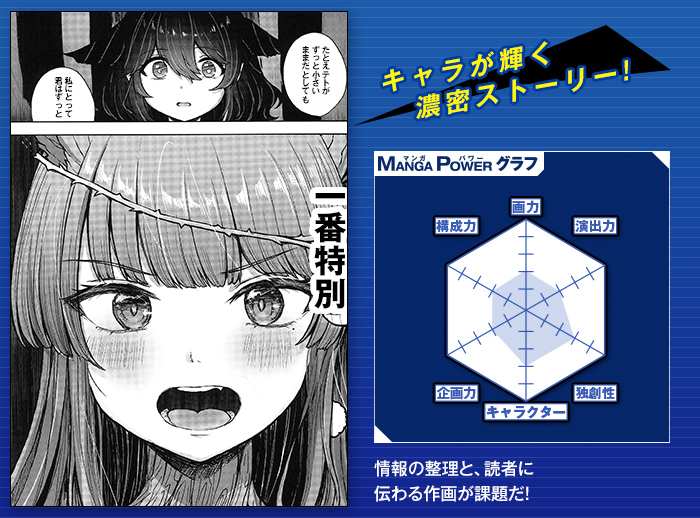 今回は個性ある作品が多く集まった。しかしどの作品も、導入で読者を惹きつける力や、必要な情報をうまく読者に伝える力が不足している印象であった。設定や画力に強みがあっても、読みづらいとそれだけで一気に読者からの評価は下がってしまう。個性とわかりやすさの両立を意識して、次回作に取り組んでみて欲しい。